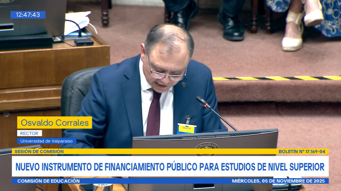 Osvaldo Corrales, rector de la Universidad de Valparaíso y presidente del Consorcio de Universidades del Estado de Chile (CUECH) participó en el Seminario organizado por la Comisión de Educación del Senado, donde llamó a reemplazar el CAE por un nuevo sistema de financiamiento estatal.